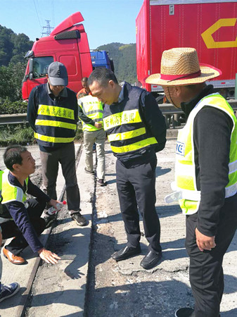 綜合督查組成員趕到養(yǎng)護(hù)攻堅(jiān)項(xiàng)目施工現(xiàn)場(chǎng),開始了當(dāng)天的督導(dǎo)、協(xié)調(diào)工作,當(dāng)場(chǎng)指出發(fā)現(xiàn)的問題,提出整改意見。