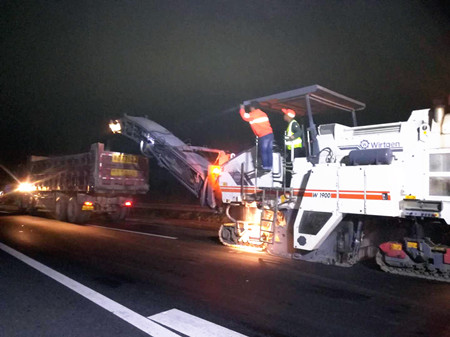黃土嶺隧道整治工作正式啟動(dòng),維養(yǎng)中心人員按照分工開始隧道內(nèi)舊風(fēng)機(jī)和燈具拆除工作。同時(shí),養(yǎng)護(hù)攻堅(jiān)項(xiàng)目開始當(dāng)天的路面銑刨工作。