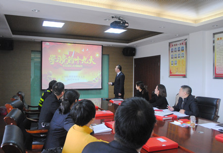 圖為學習十九大報告內容現(xiàn)場 黨支部書記王小勇制作了學習十九大報告內容的PPT,設框架、劃重點,以圖文并茂的形式,將學習十九大精神與日常工作緊密聯(lián)系起來,為更好地開展工作打下堅實的思想基礎。
