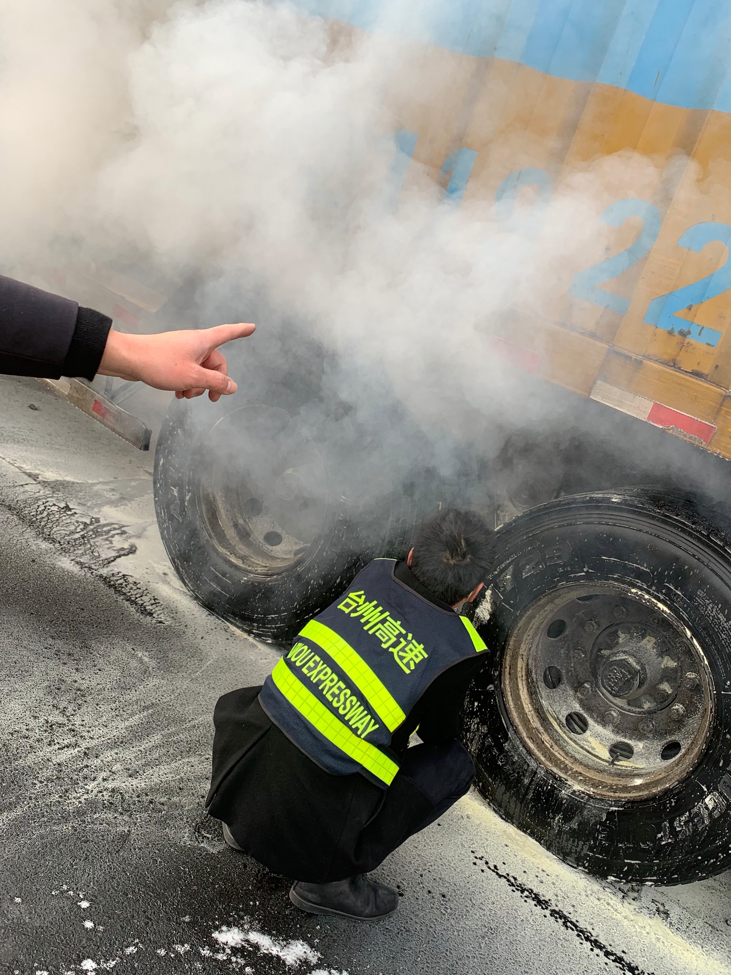 “嘭……”3月5日早上7:35分左右,臺(tái)州收費(fèi)所傳來一聲巨響,一輛車牌“閩”字開頭的大貨車緩緩駛來,其車廂后輪胎正冒火光,隨之白煙滾滾升起,駕駛員卻渾然不知,一路行駛。