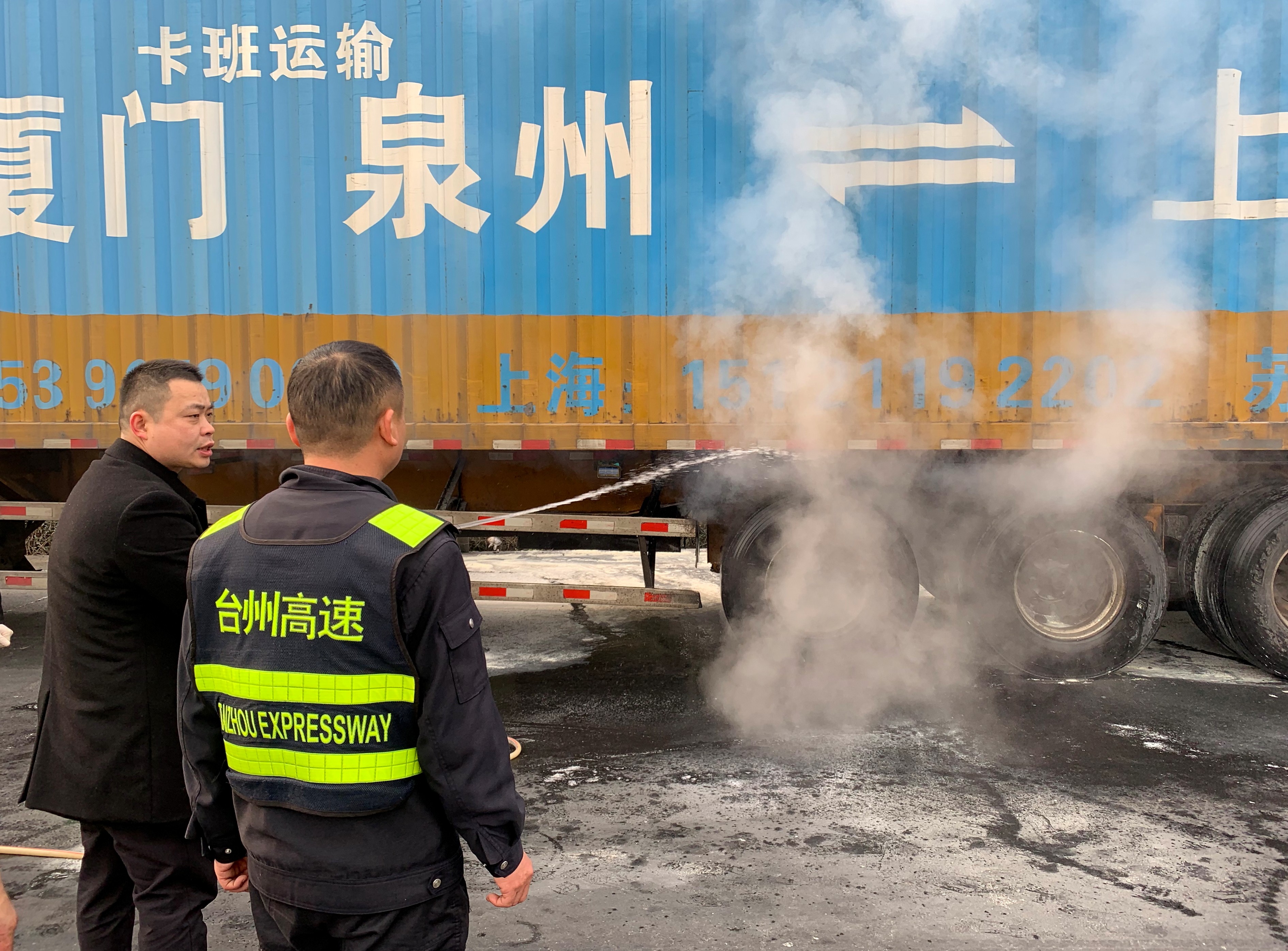 (圖為工作人員奮力救火) 就在這時(shí),突然又一聲巨響, 貨車輪胎發(fā)生二次爆炸,火苗再次復(fù)燃。但大家絲毫不畏懼,提起滅火器對(duì)準(zhǔn)著火點(diǎn),快準(zhǔn)狠,火苗再次被撲滅。現(xiàn)場(chǎng),輪胎處還冒著白煙,監(jiān)控中心何先林提議利用車道上的兩根水管的水對(duì)車輛輪胎進(jìn)行沖水降溫,避免再次發(fā)生爆炸。 經(jīng)過長(zhǎng)達(dá)半小時(shí)的緊急救援,火勢(shì)終于得到控制,無人員傷亡,車輛也沒有造成損失。據(jù)了解,該車起火原因是輪胎上有鐵絲,摩擦產(chǎn)熱導(dǎo)致輪胎爆炸起火。 “太感謝了,全靠你們發(fā)現(xiàn),及時(shí)止損,不然車就燒沒了。”駕駛員連聲道謝。 在此提醒廣大司乘人員,上高速前務(wù)必要對(duì)車輛進(jìn)行全面檢查,特別是輪胎、剎車等重要部位,避免行車途中發(fā)生故障導(dǎo)致嚴(yán)重后果。 任青青
