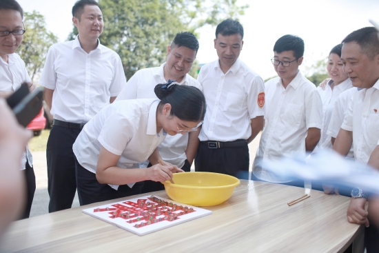 圖為活動(dòng)現(xiàn)場 活動(dòng)共由五個(gè)參賽隊(duì)伍組成,趣味活動(dòng)項(xiàng)目都包含廉潔的寓意,《“廉”接不斷》將乒乓球置于球拍上,參賽隊(duì)員單手拿球拍繞小紅帽往返共20米;《飛鏢射“貪”》用飛鏢射圓形靶中的貪字;《蒙眼刺“貪”》參賽隊(duì)員手持牙簽蒙住眼睛走到對面將氣球上的貪字刺破;《反腐倡廉》用實(shí)心球?qū)⒈}g球瓶推到;《填“廉”字》將規(guī)定粒數(shù)的彈珠用筷子夾到“廉”字的孔位上;《徐徐清風(fēng)》將第一個(gè)茶杯里的乒乓球依次吹到最后一個(gè)茶杯里。員工們在各種廉潔趣味活動(dòng)中加深了對廉潔文化的認(rèn)知,營造良好的廉潔氛圍,促進(jìn)基層廉政文化建設(shè)。