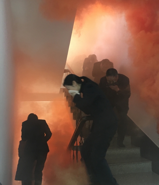 圖為樓道逃生演練 在樓道逃生演練中,大量煙霧彌漫,員工們熟練掌握逃生自救的要領(lǐng):個個用濕毛巾捂住口鼻,彎腰、沿著樓道有序快速往下逃離。 大家在突發(fā)事件面前臨危不懼、配合默契,保證了其它車輛的有序通行。在面對突發(fā)火災,也能做到有序、快速撤離。通過演練,各崗位人員不僅增強了安全意識,也提高了對應急預案的熟悉程度和面對突發(fā)事件的反應、處置和自救能力。 夏蓮萍