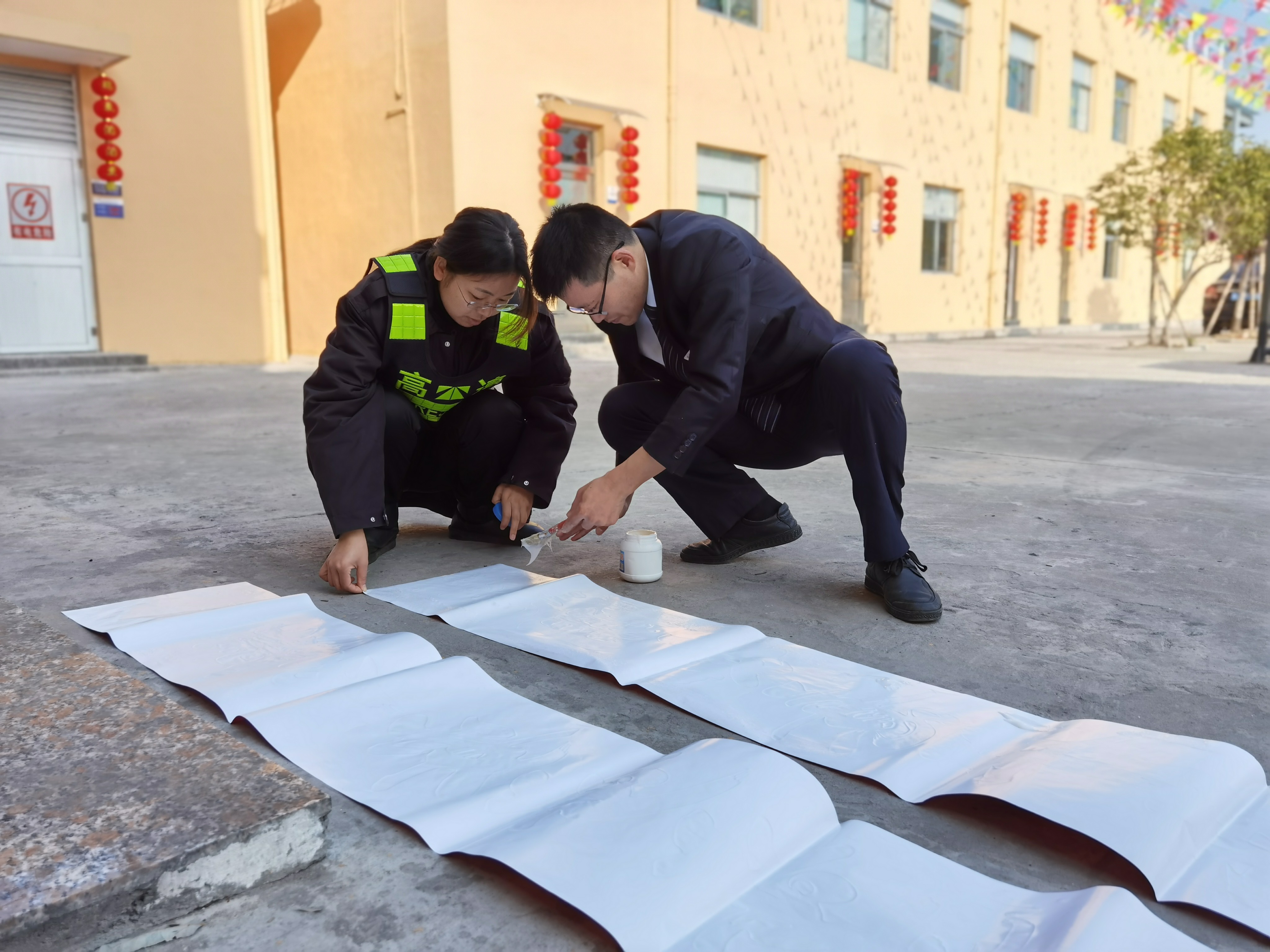 大家分工合作,搬梯子、遞春聯(lián)、貼膠帶、校正高低。在站所內(nèi)每個角落都掛上了紅彤彤的燈籠;收費區(qū)域內(nèi)廣場兩邊的欄桿上扎著一面面彩旗。一幅幅精致喜慶的對聯(lián)、“福”字,一串串三角彩旗,一個個大紅燈籠把整個收費站所點綴得處處洋溢著濃厚的節(jié)日氛圍,“年味”十足,讓在站員工和過往司乘朋友感受到新年的喜慶氛圍和“家”的溫暖。