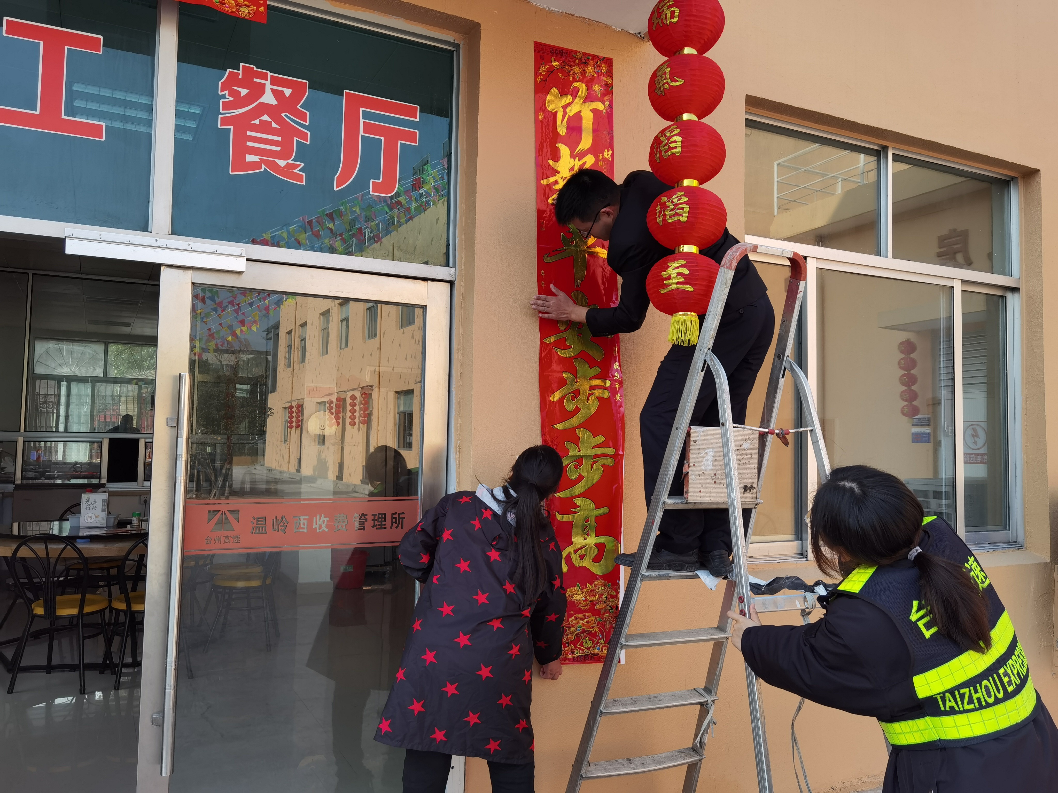 “爆竹聲中一歲除,春風送暖入屠蘇。千門萬戶曈曈日,總把新桃換舊符。”時值2021年春節(jié)來臨之際,為營造歡樂喜慶、祥和溫馨的節(jié)日氛圍,溫嶺西收費所組織職工對站區(qū)進行布置,掛燈籠、貼對聯(lián),歡歡喜喜迎新年。