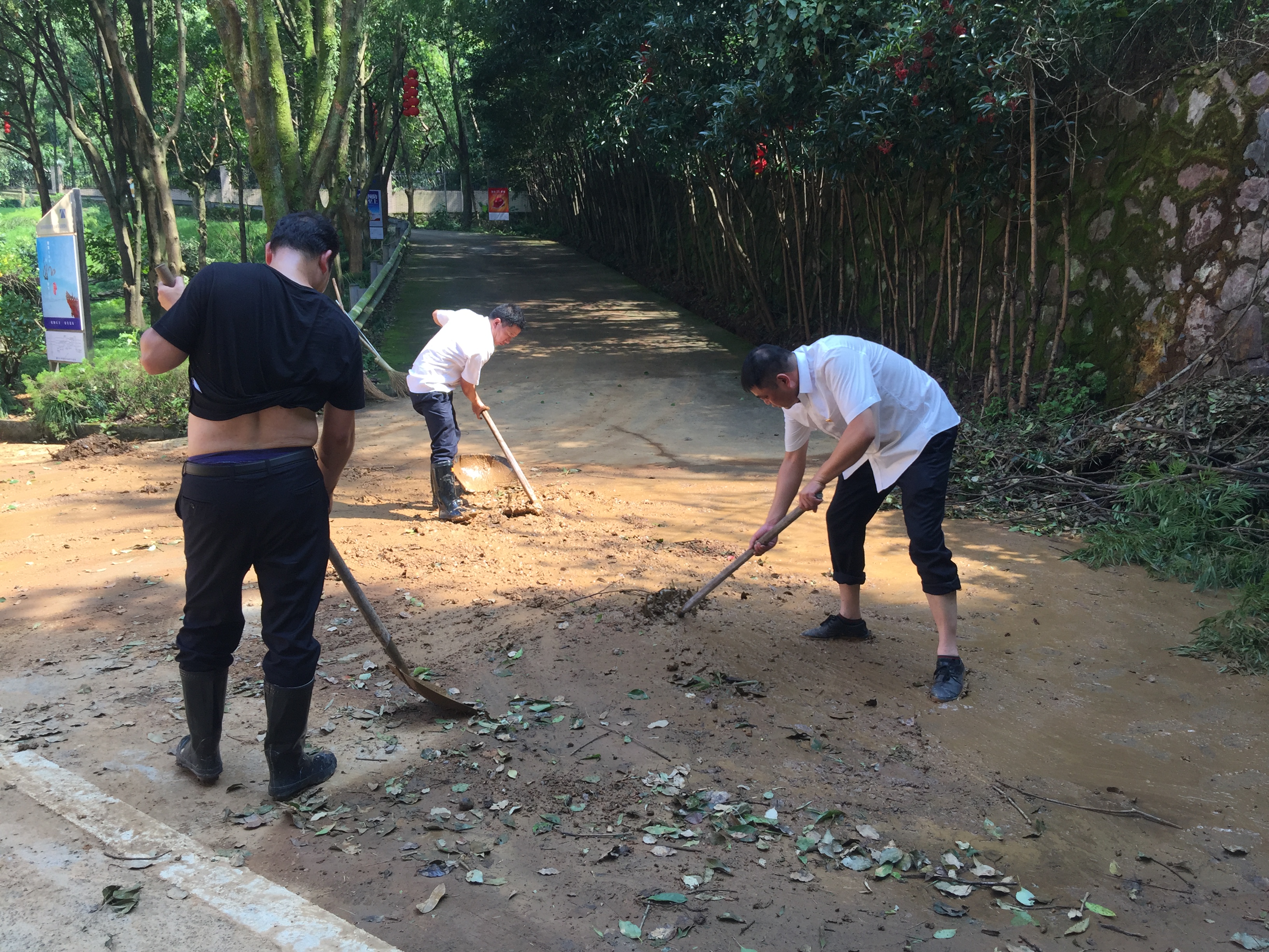 圖為臺風(fēng)過后隧道所人員清除淤泥