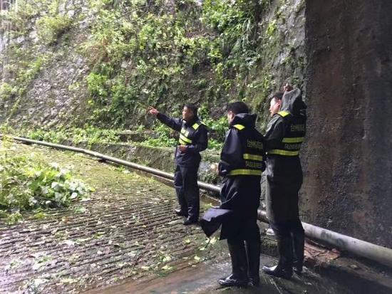 一大早,徹夜未眠的所負(fù)責(zé)人、執(zhí)勤隊員又開始緊張忙碌:巡查斜井、邊坡、山體、邊溝部位;檢查南北配電房漏水情況,確保臨時用電安全;查看所轄路段警示牌倒塌或受損情況;及時補(bǔ)充抽水泵等應(yīng)急物資,增加豎井排水設(shè)備,提高排水能力,預(yù)防隧道內(nèi)出現(xiàn)雨水倒灌現(xiàn)象;給停電停水的馬宗嶺隧道人員送去糧食和飲用水等物資,做好后勤保障。