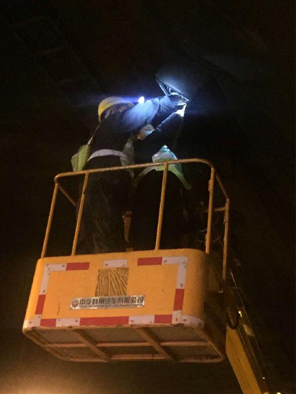 圖為進(jìn)隧道進(jìn)行搶修 找到無圖像的“癥狀”之后,大溪嶺隧道所電工與維養(yǎng)中心的弟兄“對癥下藥”,在大家的共同努力下,10:49完成攝像頭的搶修工作,寧向隧道恢復(fù)正常通車。 孫鵬