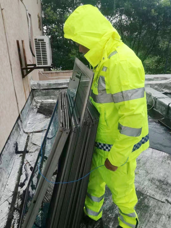 圖為工作人員捆扎散落的物品 8月9日上午,超強臺風(fēng)帶來強降雨,大溪嶺隧道所隊員們做好一切防臺準(zhǔn)備,備好發(fā)電機所需燃油,保證所有車輛車況良好并加滿油;充分備好繩索、應(yīng)急燈、雨衣雨靴、藥品、食物等防臺物資;檢查各類通訊線路,確保內(nèi)部通訊電話、報警電話等重要線路暢通;放下北廣場的二高桿燈。隊員們爬到屋頂,對散落的物品進行捆扎,并疏通堵塞的排水管,確保排水設(shè)施良好。所有人員全力做好防臺部署工作和防御措施,確保大溪嶺隧道一切設(shè)備正常運行,隧道平安暢通。 陳智慧