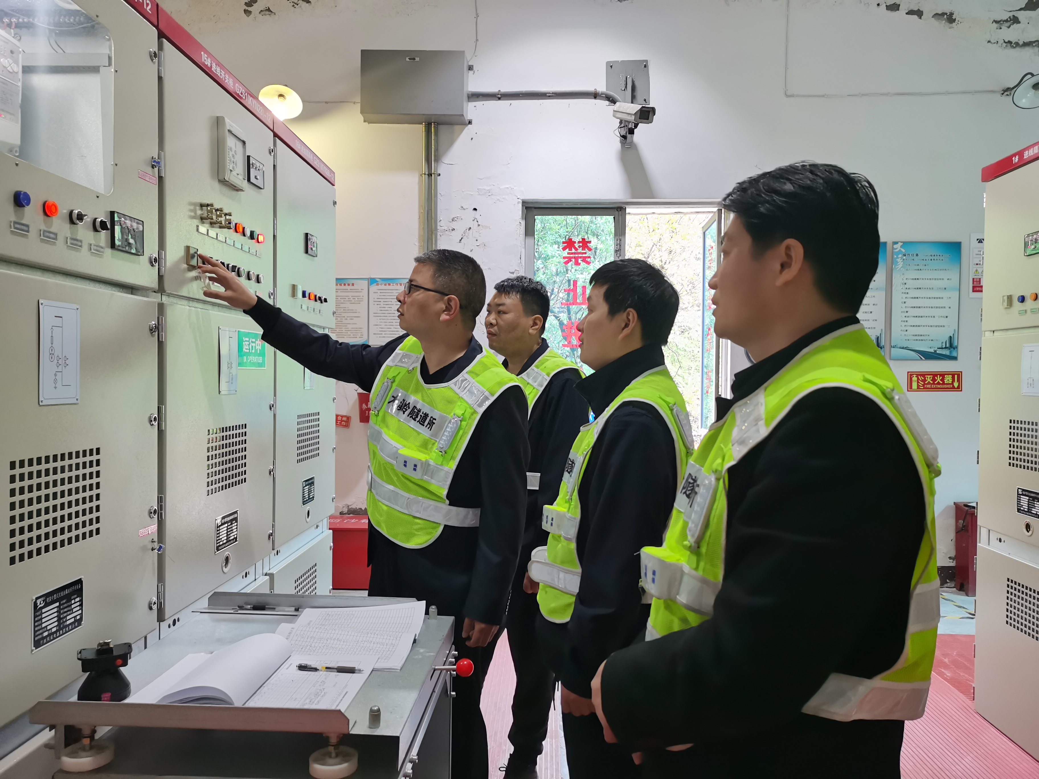 圖為檢查配電房設備 近期,由于高速公路免費通行,大溪嶺隧道車流量日漸增大,日均約3.5萬輛,隧道行車安全不容小覷。為切實保障“五一”大流量隧道安全,檢查組對隧道的高邊坡、排水邊溝、隧道內壁有無滲水等進行實地勘察;對發電機房、隧道設備設施、消防器材、配電房的機電設施和消防設備、應急照明等進行了全面細致的檢查,并對員工食堂的食品安全、衛生情況進行檢查,即時整改檢查中發現的安全隱患問題。隧道所還要求執勤隊要加強隧道巡查次數,巡檢時注意安全,做好應急處理措施。