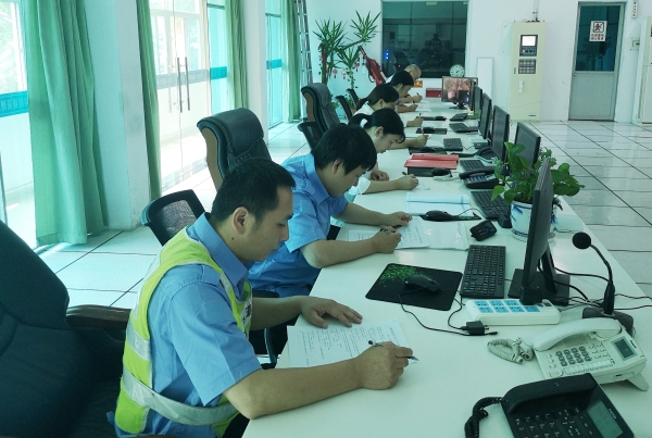 此次測試題庫內(nèi)容包括中控、電工、安保等專業(yè)知識,分三批次進行。隊員在做完隧道業(yè)務(wù)知識測試后,繼續(xù)各崗位“模擬操作”測試。中控測試模擬隧道(寧向或溫向)發(fā)生火災(zāi)、追尾、拋錨等事故,按照預(yù)案進行操作,以此檢測中控員工作中熟悉事故處置流程的程度和中控設(shè)備操作使用的能力;電工根據(jù)高桿燈升降電路控制原理圖、以此檢測電工專業(yè)水平,增加電工的基礎(chǔ)知識,提高維修能力;安保測試消防水帶的兩帶連接,進一步提高隊伍執(zhí)勤訓(xùn)練水平和滅火救援能力。