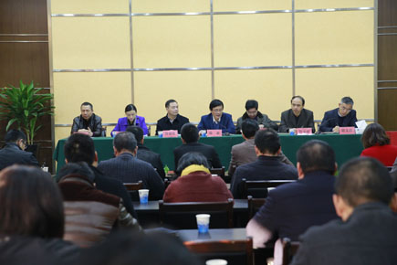 圖為公司董事長謝文君在會上匯報2016年度工作