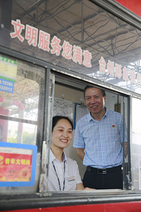 “今天車流量多嗎?你們是公司形象的代表,請把最優(yōu)質(zhì)的服務(wù)提供給他們。”在臺(tái)州收費(fèi)所一號(hào)崗?fù)だ?,張建平一邊慰問?dāng)班收費(fèi)員,囑咐他們注意安全和休息,一邊鼓勵(lì)他們堅(jiān)持做好文明服務(wù)。他還到黃土嶺隧道所、臨海南收費(fèi)所慰問當(dāng)班執(zhí)勤隊(duì)員和收費(fèi)員。此時(shí),各所食堂管理房正處于改造階段,他仔細(xì)查看了各所食堂和工作場所,了解大家的飲食和工作環(huán)境。