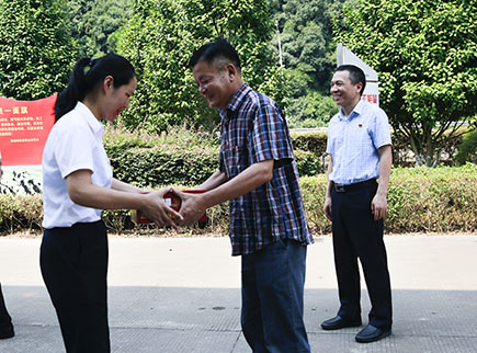 圖為公司工會(huì)主席項(xiàng)義超給收費(fèi)所員工送上消暑品