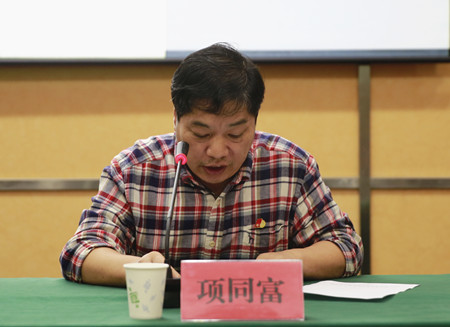 圖為安全總監(jiān)項(xiàng)同富傳達(dá)市長(zhǎng)張兵在安全生產(chǎn)委員會(huì)會(huì)議上的重要講話精神