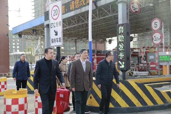 圖為市行政服務(wù)中心黨委副書記金偉一行在臺州收費(fèi)站參觀學(xué)習(xí)
