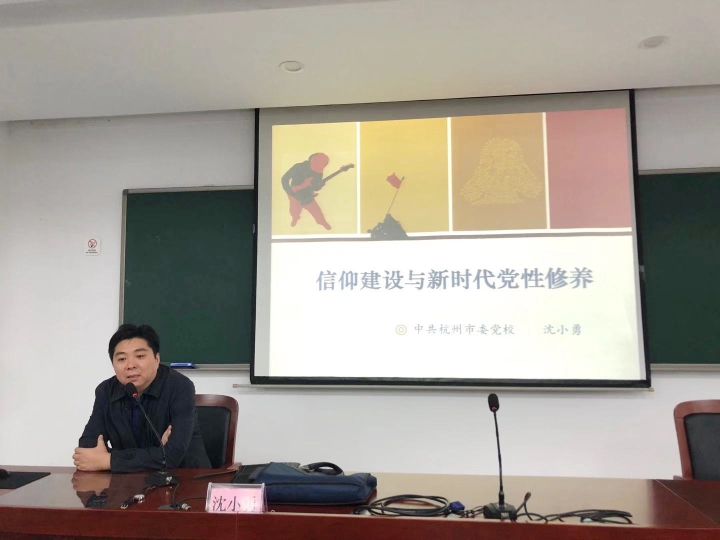 圖為杭州市委黨校馬克思主義基本理論教研部教授沈小勇以《信仰建設和新時代黨性修養 沈小勇》為題授課