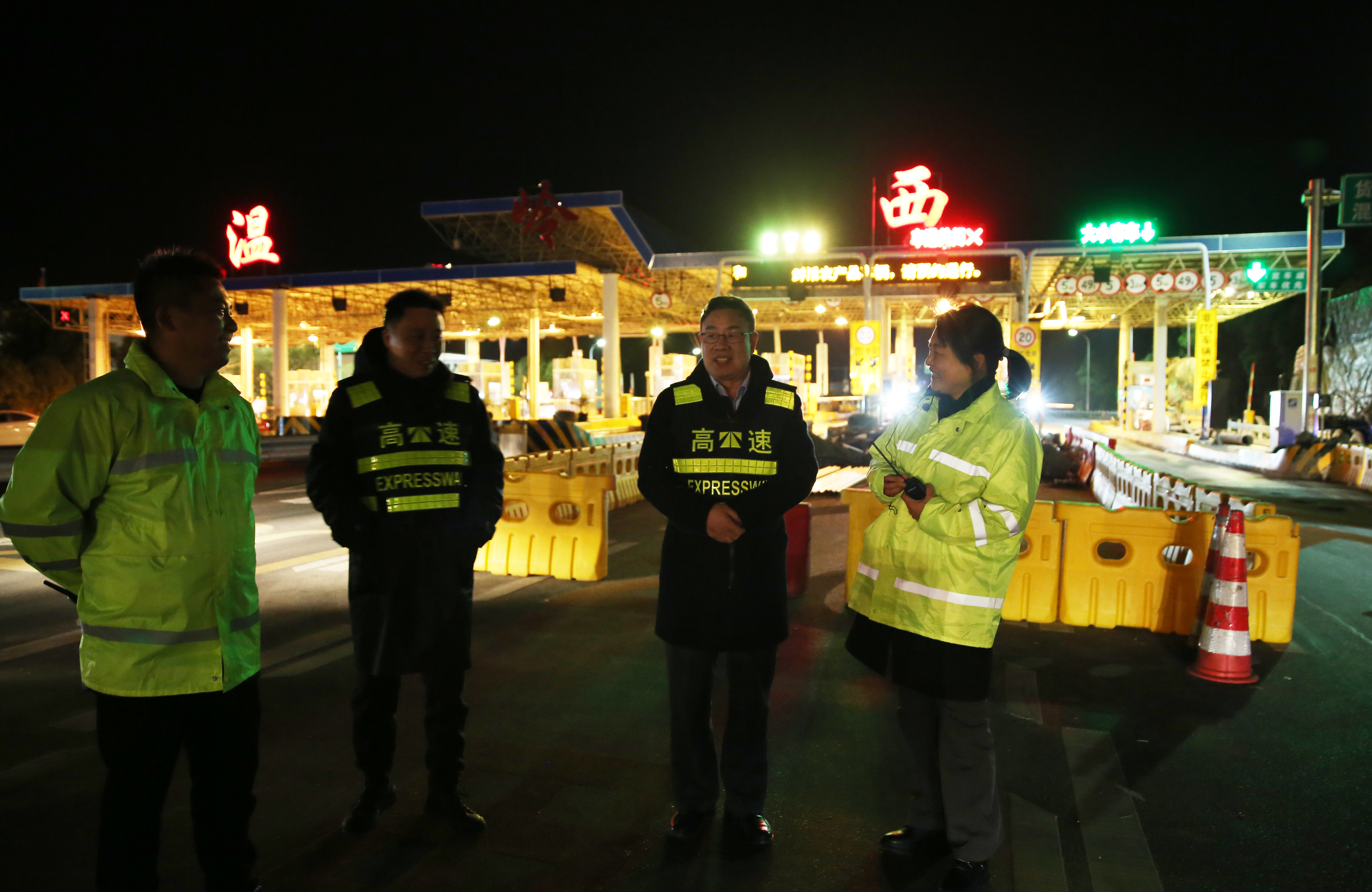為確保取消省界收費站工作平穩過渡,12月31日,臺州市副市長林先華、市交通局局長陸善福、市公路局局長馬德勝,以及當地政府部門領導紛紛來到集團一線收費站,協力助推取消高速公路省界收費站工作順利開展。