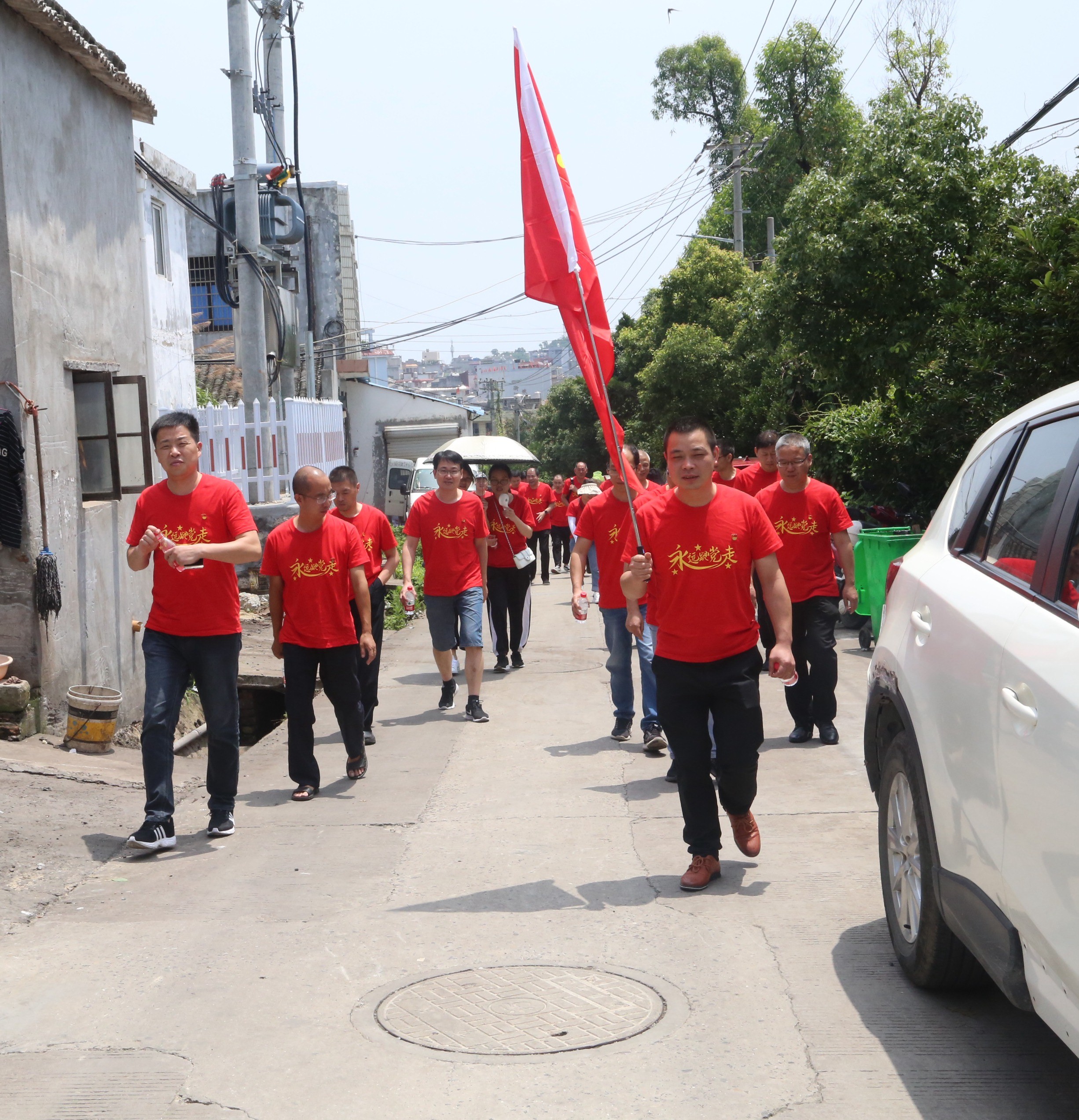 活動當(dāng)天,烈日炎炎抵擋不住大家追溯紅色基地的熱情,黨員隊伍緊跟黨旗,順著“紅色地圖”,沿著崎嶇小道,大步爬上玉環(huán)坎門英雄基干民兵營。在女民兵們的熱心引導(dǎo)和生動解說下,大家側(cè)耳傾聽,目不轉(zhuǎn)睛地觀看展示墻上與玻璃柜中的民兵隊歷史事跡照片、繳獲的槍支、文件與榮譽獎?wù)碌鹊龋癍h(huán)坎門人民的紅色抗爭歷史仿佛仍歷歷在目,打動著每位黨員的內(nèi)心。隨后,大家在黨旗前光榮宣誓,重溫入黨誓詞,各位黨員緊握右拳,用洪亮的聲音表達著自己對黨的忠誠,對初心使命的矢志不渝。