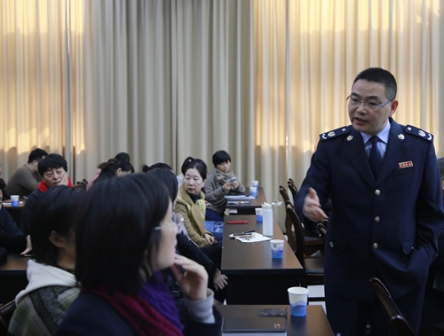圖為臺(tái)州經(jīng)濟(jì)開發(fā)區(qū)稅務(wù)局局長(zhǎng)柳東海在課上講話