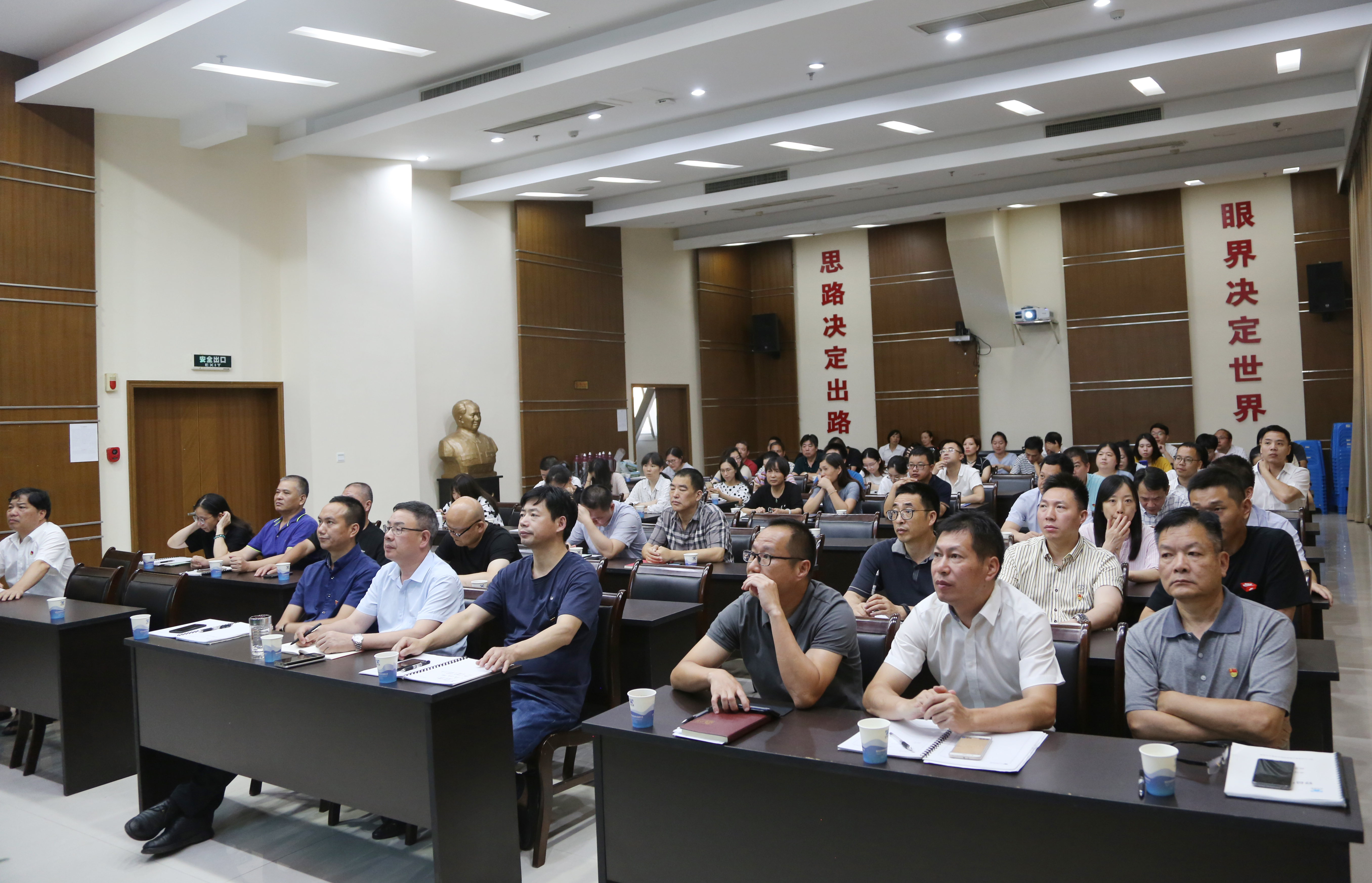 圖為參加學習的領導干部職工 觀看中,全體人員在領略美麗中國的同時,對生態環境保護者的堅持付出感到敬佩,也為祖國擁有這么多美麗和諧的環境而感到驕傲。 項同富指出,走綠色發展之路,建設綠色家園,臺州也在行動。比如臺州長潭水庫“大水缸”的整治提升,天臺后岸村農家樂等美麗鄉村建設,大陳島的生態開發,天臺桐柏抽水蓄能電站等等。臺州高速集團沿線也盡力實施綠化、美化、亮化工程,將裸露的山體、隧道洞頂、分離式路基中間帶進行復綠。沿線小規模還用電用太陽能供電,隧道照明逐步改用節能產品等等,努力以實際行動倡導生態文明建設。