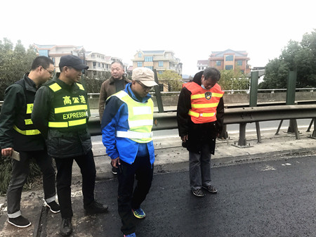 12月4日,難得的晴好天氣,甬臺溫高速公路臺州段一期路面專項養護攤鋪現場,工人緊張而忙碌作業。施工一旁,另有三位身著反光背心、頭戴帽子、腳穿布鞋的人員正目不轉睛地注視著攤鋪機作業,時不時指點工作,他們是集團路面專項養護綜合督查組成員邵克、馮濟爐和葉榮江。