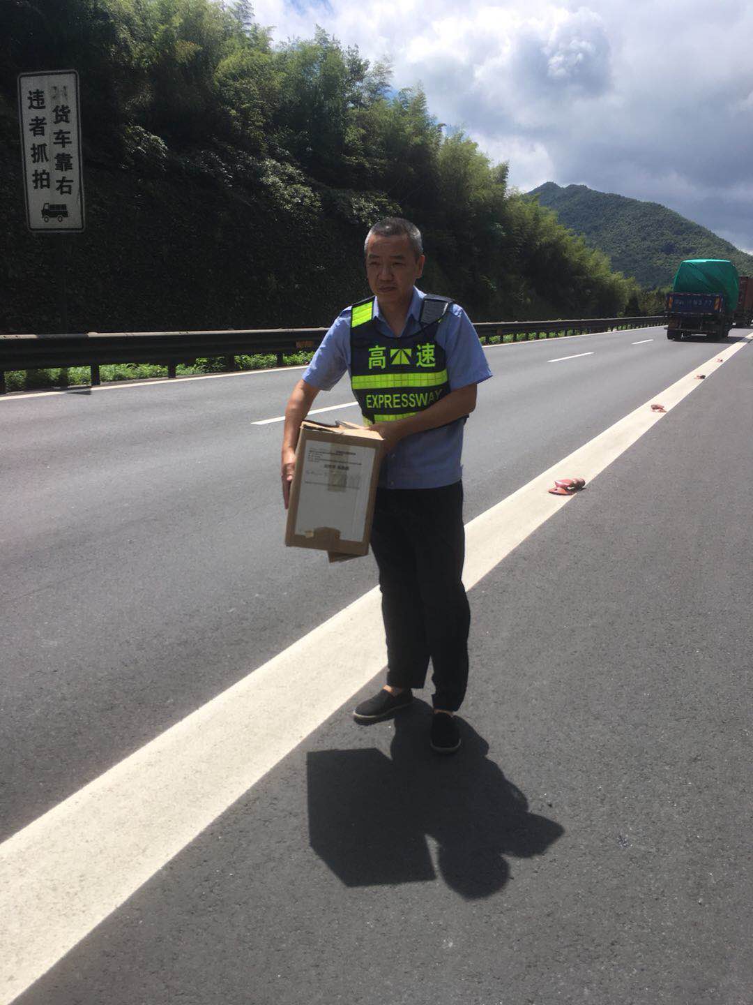 快遞車高速路上不慎丟包裹 值勤隊(duì)多方聯(lián)系歸還原主