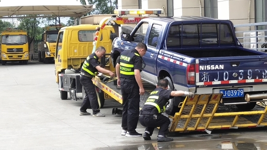圖為演練現(xiàn)場 此次演練的虛擬情境為隧道內發(fā)生車輛起火事件并造成路產(chǎn)損失而開展的救援處置。施救中心在接到指令后,兩人一組,分成兩組,分別駕駛施救車輛和勘查車輛出警奔赴事故現(xiàn)場。 演習過程中,公司安保部對中心人員快速反應、科學處置,及時滅火和現(xiàn)場勘查路產(chǎn)損失等專業(yè)能力表示了肯定。