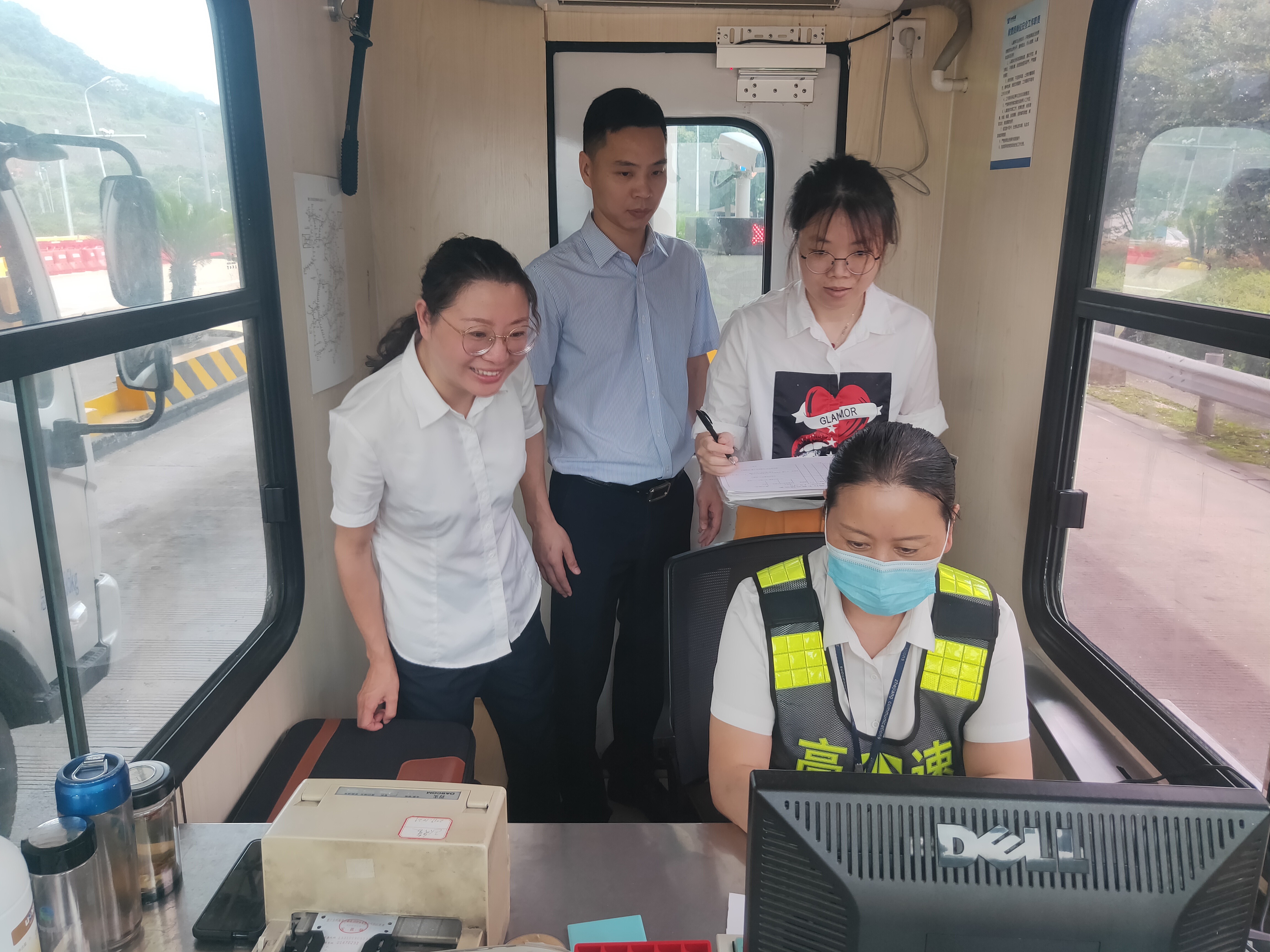 圖為檢查人員在崗亭現場盤卡 受今年新冠肺炎疫情影響,全國高速公路一度實行免費通行,自5月6日0時起才恢復正常收費,同時聯網收費系統有重大調整,ETC車輛出口收費金額實行“實時顯示”和“一次通行、一張賬單、一次扣費、一次告知”,原先的考核細則已不再適應,征費管理部根據高速公路全國聯網收費系統的實際,對原考核細則進行修改,并于五月底下發到各收費所。