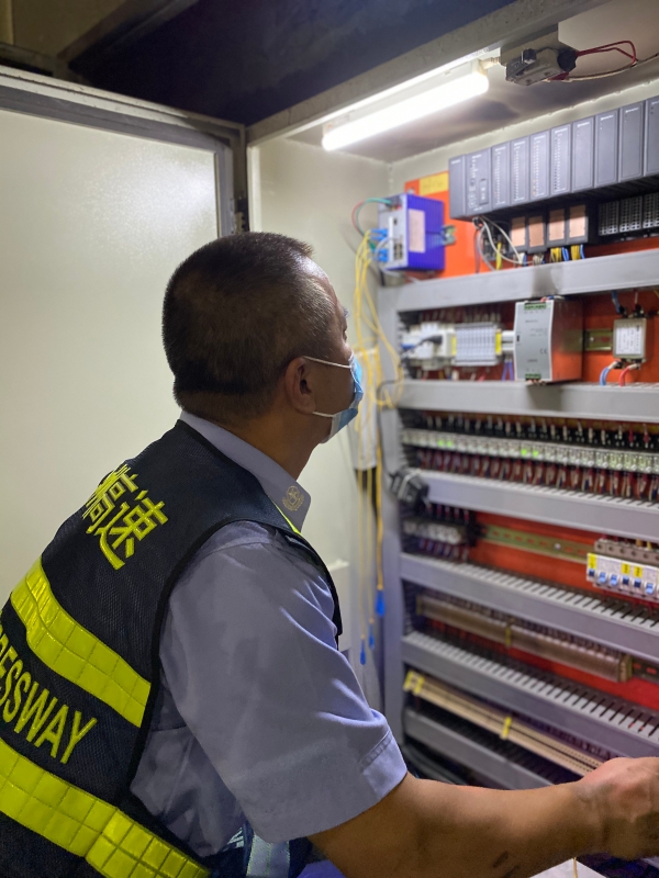 雖然隧道內(nèi)沒(méi)有烈日的灼燒,但日均4萬(wàn)的車(chē)流,加上尾氣排放,導(dǎo)致隧道內(nèi)的氣溫遠(yuǎn)高于室外。當(dāng)室外37°C時(shí),整個(gè)隧道里宛如一個(gè)蒸籠。盡管如此,廣場(chǎng)上、電纜溝上隨時(shí)都有執(zhí)勤隊(duì)員忙碌的身影。他們來(lái)回徒步穿梭于隧道,檢查指示燈、消防設(shè)備箱、緊急電話(huà)、火災(zāi)報(bào)警等設(shè)施設(shè)備,排查各類(lèi)安全隱患,修復(fù)受損設(shè)備,處理各種突發(fā)情況。一趟下來(lái)臉和胳膊被熏得黝黑,口罩、衣服濕了又干、干了又濕,盡管工作量大、強(qiáng)度高,他們從不喊苦說(shuō)累。