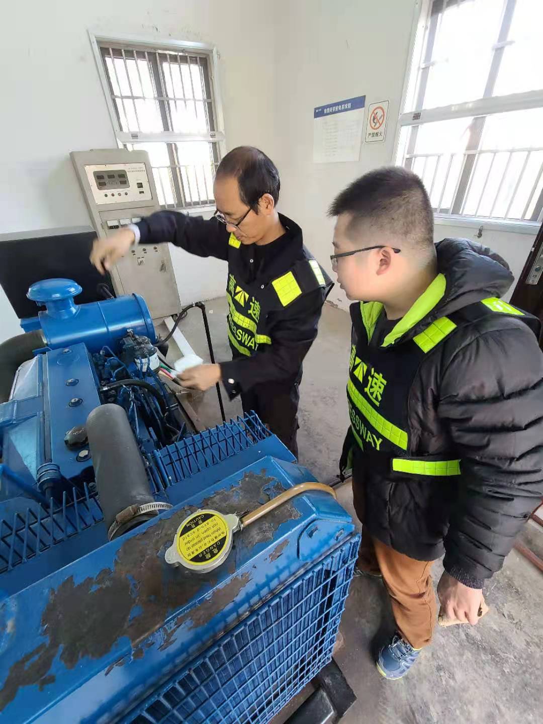 (圖為工作人員在對發電機巡檢)
