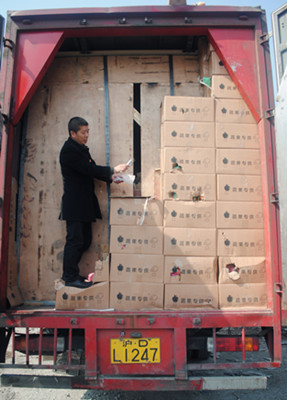 今年3月1日凌晨2時許,一輛標有“蔬菜特供”、車牌號為滬DL1247的紅色廂式貨車駛進臺州高速公路臺州收費所“綠農車”專用收費道口,出口司機申報“綠農車”運送蘋果,要求減免通行,讀卡后顯示該車免費金額為250元,收費人員按規定對該車進行開廂核查。