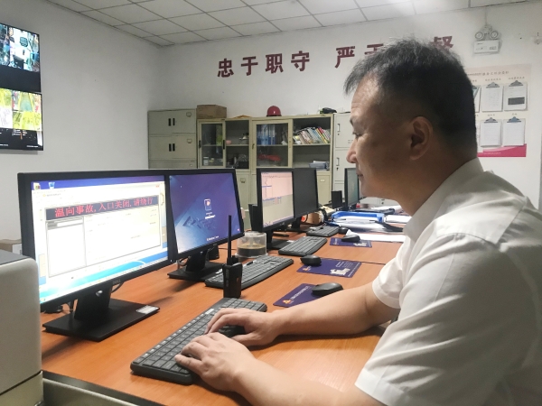 在工作時,杜廣勝時不時抬頭看著屏幕,觀察著每一個監控視頻的動態。雖然他在監控崗位上只有短短的兩年,但每當遇到突發事件,總能做到處理得當、及時上傳下達、保障信息暢通。