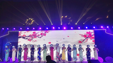 圖為旗袍秀現場 晚會一開場,由椒江區前所街道前所村(全國文明村)表演的鑼鼓舞《歡慶新時代》馬上將觀眾帶入到熱烈的氣氛中。隨后,各家單位選送的15個節目以小品、舞蹈等多種形式,展示學習貫徹落實十九大的成績,歌頌新時代黨領導下的新氣象。 公司員工包德福代表公司參加晚會,獨唱歌曲《天際》,其動聽的歌聲贏得了現場觀眾的陣陣掌聲和喝彩。 周茂森