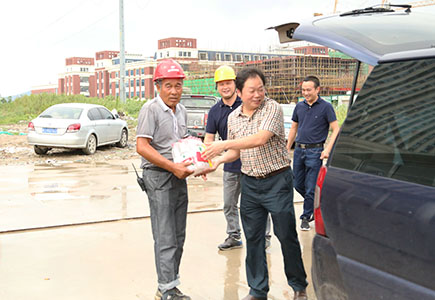 8月1日上午,仁和房產(chǎn)公司經(jīng)營(yíng)班子成員來(lái)到文鼎苑樓盤工地,慰問高溫天堅(jiān)守一線的廣大施工人員。