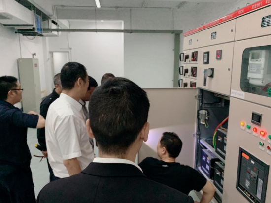 圖為多方合力查找問題現(xiàn)場(chǎng) 5月23日,電力公司上門檢修,告知配電房及電路問題一切正常。面對(duì)空調(diào)正常、電路正常的報(bào)告,展廳內(nèi)又嘗試開啟空調(diào),但10分鐘左右高壓又跳閘。即將進(jìn)入炎熱的夏季,房產(chǎn)銷售展廳內(nèi)不能缺少空調(diào)。 房產(chǎn)公司求援于工程部機(jī)電設(shè)備維養(yǎng)中心,5月28日,葉俊等四名專業(yè)電力人員,以及大溪嶺隧道所金衛(wèi)軍赴銷售廳對(duì)電力問題進(jìn)行現(xiàn)場(chǎng)勘察,經(jīng)仔細(xì)梳理、剖析,得出結(jié)論后反饋給電力部門,電力部門采納建議后第二次派人前來整改,歷史遺留電力問題終于徹底排除。 鄭攀