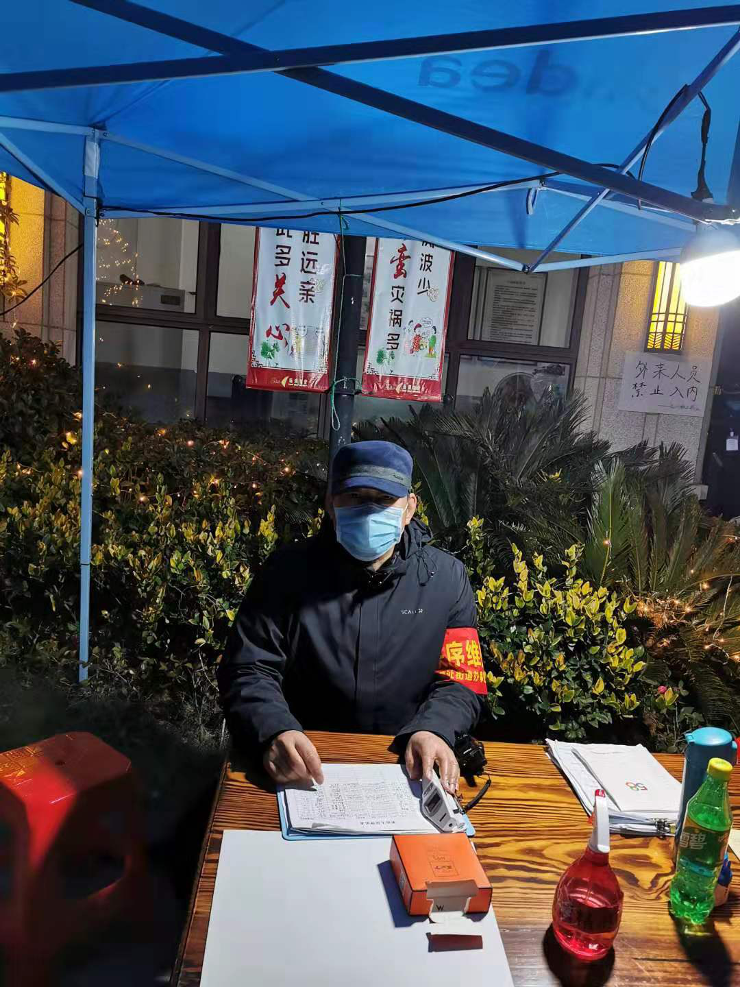 黨員丁聰,積極參與泰和苑小區(qū)的卡點(diǎn)測溫志愿服務(wù);