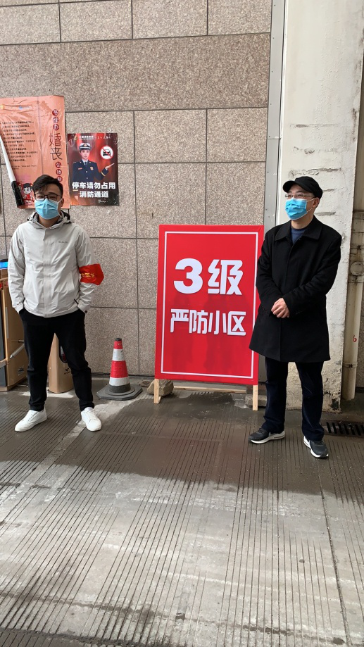 黨員包啟曉,在星洲小區(qū)援助社區(qū)逐家逐戶發(fā)放通行卡,并多次參與社區(qū)卡點(diǎn)測溫志愿服務(wù)。