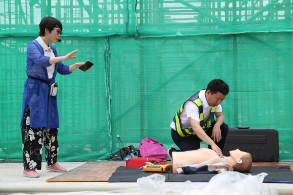 圖為活動人員參加心肺復蘇實操演練 此次演練的第二項重頭戲是心肺復蘇術培訓,建筑工地多為臨時工棚且露天作業(yè),受臺風影響較大,心肺復蘇對于遭遇意外的施工人員來說如同救命稻草。高速集團安保部邀請了臺州職業(yè)技術學院副教授李美芬到演練現(xiàn)場進行心肺復蘇術培訓,李美芬詳細講解了心肺復蘇術和AED的理論知識、操作要領和具體方法,并規(guī)范熟練地進行了現(xiàn)場演示。隨后參與演練的各部門代表上臺學習實操,李美芬細心指導每一個動作,耐心講解每一個要點,教學效果顯著,有效提高了參演人員的急救技能。 防汛防臺無小事,安全生產(chǎn)有保障,房產(chǎn)集團下有多個在建工程項目,此次演練能夠進一步強化現(xiàn)場人員的防汛防臺意識,普及自救急救知識,提高工程管理人員、施工就業(yè)人員的防災抗災和應急處置能力。 盧丹麗