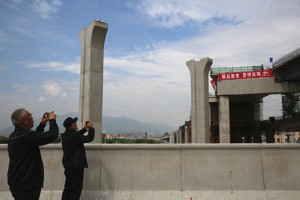 圖為部分老干部在6#立交橋上駐足拍照 老干部一行自南向北,先后來到2#隧道、7#~6#立交、8#立交施工現(xiàn)場,實地了解內(nèi)環(huán)路(黃巖段)項目建設(shè)進展。每到一個考察點,鐘彪仔細地向老干部們介紹了項目的總體概況、目前的施工進展等相關(guān)情況。一路上,老干部們邊走邊看邊議,不時舉起手機拍照,記錄下考察中難忘的一幕。 看著眼前拔地而起的高架橋,老干部們對內(nèi)環(huán)路建設(shè)的快速推進以及黃巖城市建設(shè)的發(fā)展新變化紛紛表示贊嘆,同時鼓勵全體參建人員再接再厲,抓好安全生產(chǎn),高質(zhì)量、高標準地完成建設(shè)任務(wù),為加快推進臺州新型城市化發(fā)展而努力。 張琛