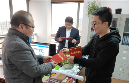 圖為分發安全手冊 隨后,市政公司印發了《員工消防安全手冊》,全體員工人手一本。員工們拿到手冊后立馬翻閱起來,大家都表示小手冊的實用性強,特別是其中的辦公室安全和逃生自救要點圖文并茂,會堅持做到時刻警醒、安全第一。同時,每一位員工簽訂了消防安全倡議書,以責任到人的方式落實消防安全。