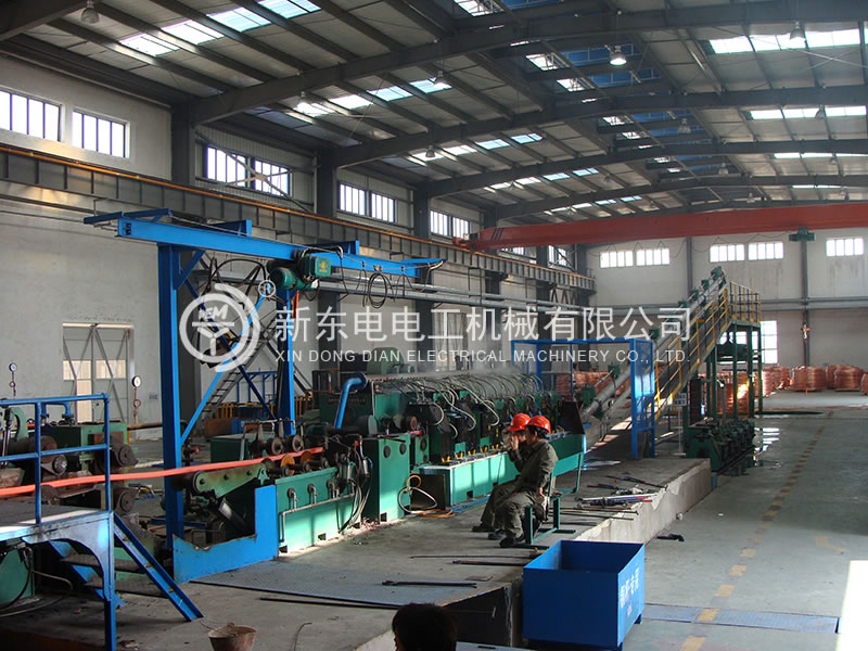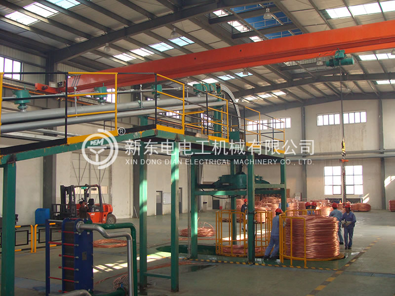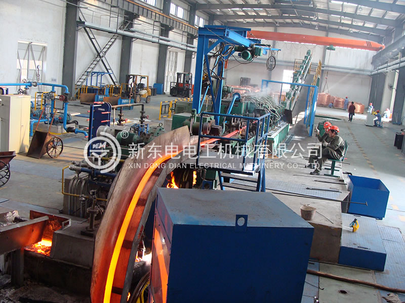 本生產(chǎn)線積徐州新東電電工多年研發(fā)銅連鑄連軋技術(shù)之經(jīng)驗,綜合美國南方線材、德國SMS、意大利 PROPERZI 同類設(shè)備的優(yōu)勢特點,為國內(nèi)獨創(chuàng),可用100﹪廢舊紫銅作原料,采用先進(jìn)的火法精煉技術(shù),直接在連鑄連軋生產(chǎn)線上生產(chǎn)符合國標(biāo)的光亮低氧銅桿。